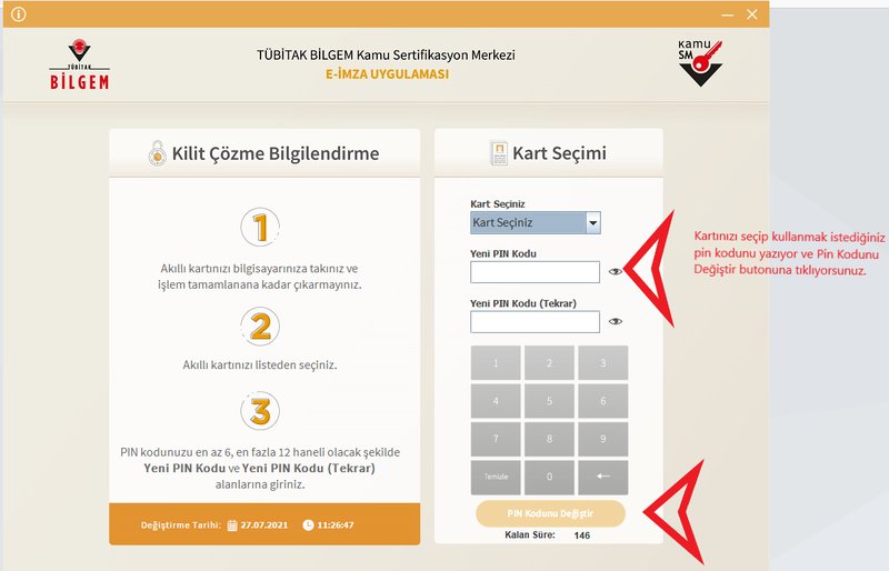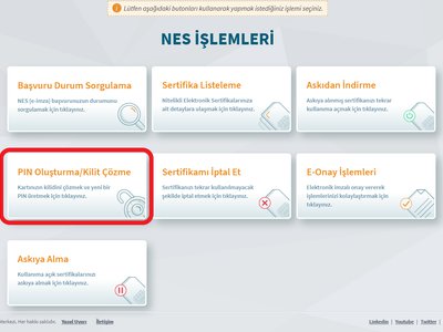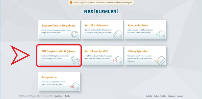 Kamu Sertifikasyon Merkezi web sitesine (https://kamusm.bilgem.tubitak.gov.tr/) girdikten sonra resimlerdeki adımları takip ederek yeni pin kodu oluşturma işlemini gerçekleştirebilirsiniz.